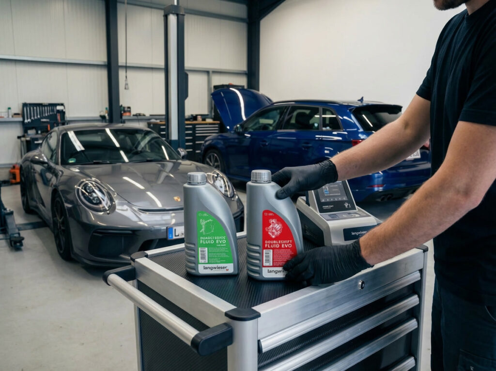 Ein oft unterschätzter Bereich ist die Mechatronik (z. B. beim DQ200 7-Gang-DSG). Hier arbeitet ein eigener, vom mechanischen Getriebeöl getrennter Hydraulikkreislauf. Das Fluid muss extrem dünnflüssig sein, um die feinen Ventile blitzschnell zu steuern.